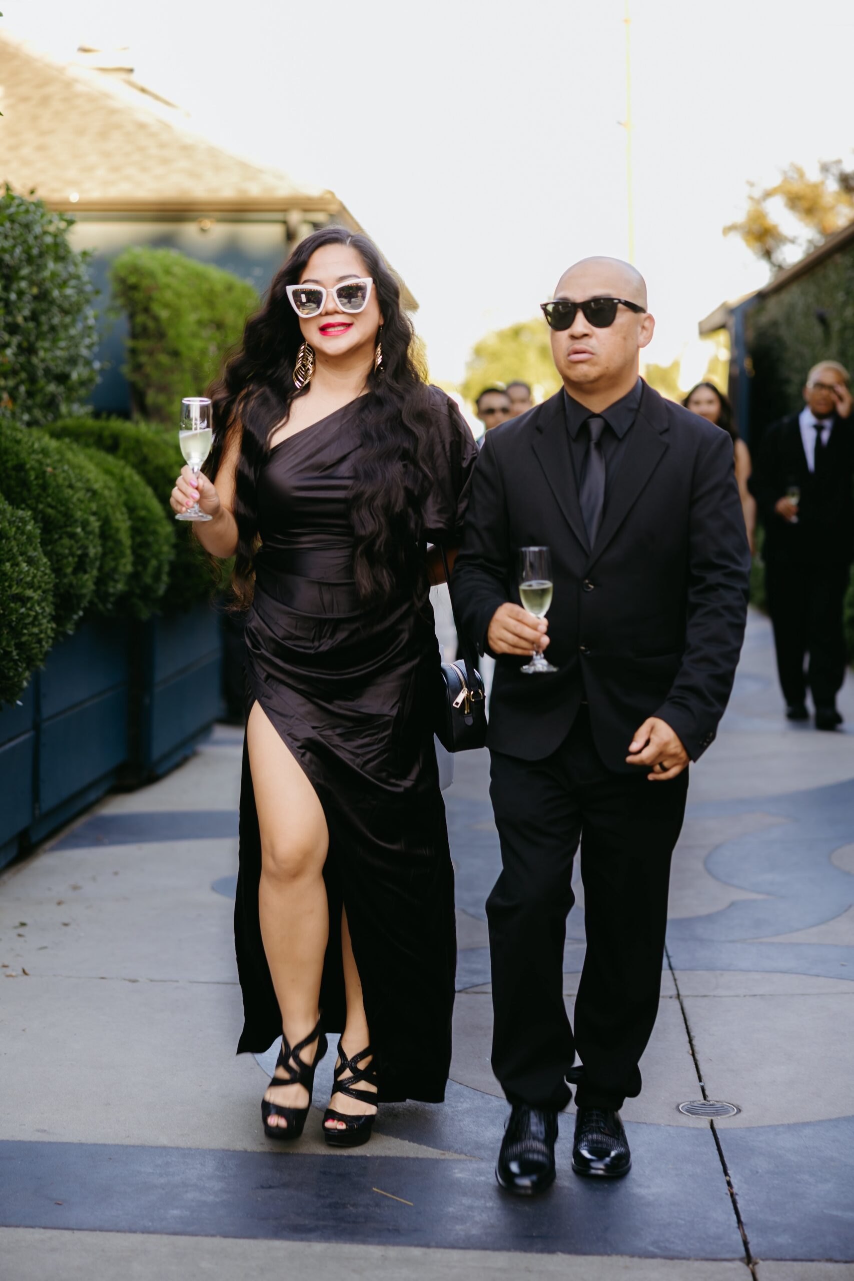 For Lay and Jonathan, a black-tie affair awaited. Guests adhered to an all-black dress code, donning formal evening wear. The chic attire created a cohesive look for their wedding day, seen through their wedding video and photography experience.